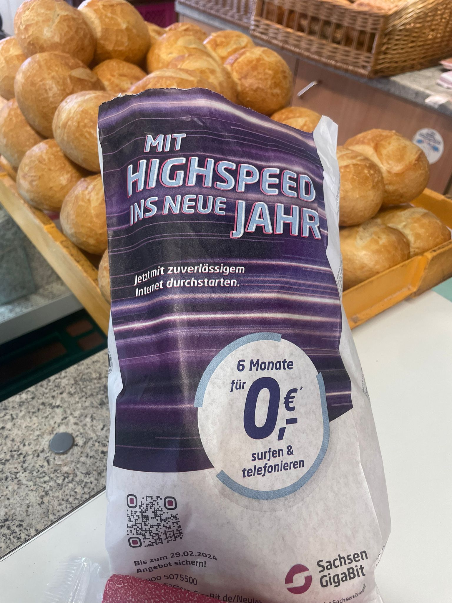 Eine amber BAG mit Weihnachtsgruß beim Bäcker.
